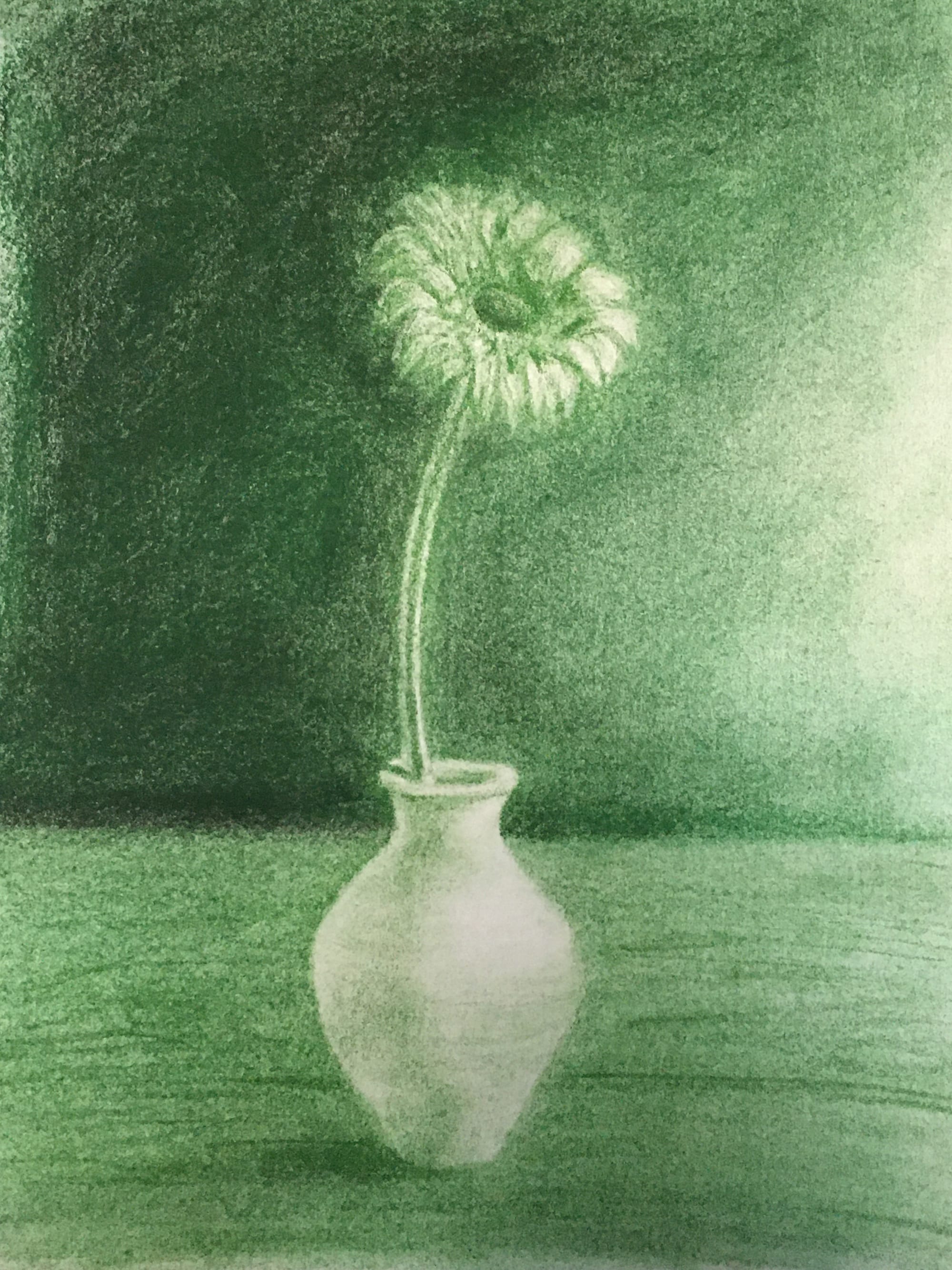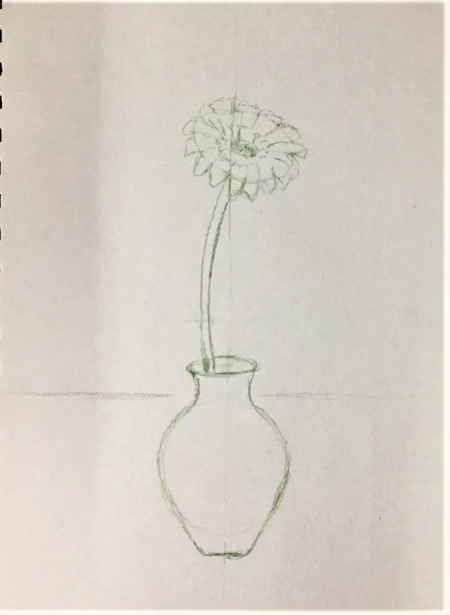 أن الطاولة خشب والجرة طين ترابي لذا أثناء التلوين نحرص على تباين الدرجات بأن تكون الطاولة أشد لونًا من الجرة